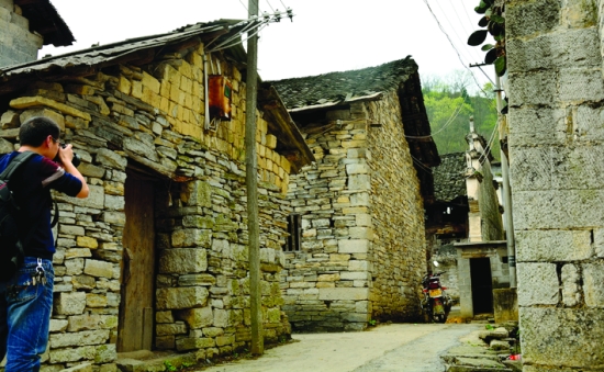 舒家塘内,很多青石铺砌的巷道、青石构筑的房舍依然保存完好。