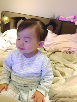 照片上,小玥儿坐在乱糟糟的床上,眯着眼睛微微笑着。网友评论:“哈哈,一下了变样了。长大了好多!”“感觉长得太喜庆了。”“好美的小玥儿,头发都这么长了,都可以扎小辫子了。”