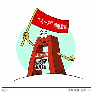 上海证券交易所4月17日宣布,为适应证券市场“一人多户”账户体系,股票期权业务“一人一户”限制已于近期放开,符合投资者适当性管理相关要求的投资者最多可以开立5个衍生品合约账户进行股票期权交易。 新华社发 程硕 作