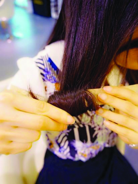 step5 将纸条缓缓向上卷起,为了卷度能够更好地定型,卷起时一定要保持头发紧致度。