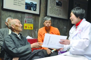 4月22日,泸溪县老科协、中老年保健协会专家会同县卫生局医务人员共22人,沿着崎岖的山路,来到达岚镇岩门村古堡寨“百岁健康试点村”开展送医送药下乡义诊咨询活动。此次活动共免费发放4000余元药品,300余份宣传资料并为每位老人建立居民健康档案。