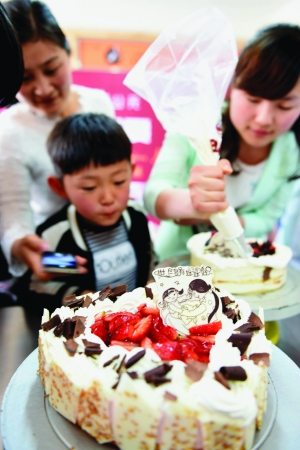 5月9日,在母亲节到来之际,安徽省亳州市一食品公司开展“母亲节我为妈妈做蛋糕”主题活动,吸引了众多孩子和妈妈共同参与。新华社发 刘勤利 摄