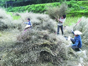 近年来,泸溪县按照“稳定面积、调优结构、合理布局、提高效益”的总体要求,狠抓特色经作油菜生产,通过夯实科技带动、示范推动、政策联动三项举措,确保规模产量实现新突破。眼下,正是抢收油菜子的季节。在泸溪的田间地头,广大农户抓住晴好天气收割油菜。图为5月19日,兴隆场镇岩坡村村民杨昌兰一家忙着抢收油菜子。 李焱华 吴学高 拍摄报道