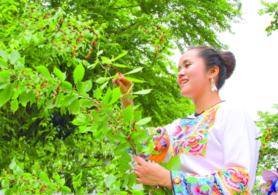 5月16日,一位苗族姑娘在金龙村采摘樱桃。