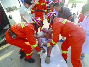 本报讯(记者 顾勇兵 通讯员 唐国富)5月18日晚上5点59分,永顺县南山大道府顺家园往张家界方向斜对面的1公里处,一辆面包车与一辆停靠在路边的后八轮货车发生追尾,面包车司机被卡在驾驶室无法动弹。所幸,当地消防官兵及时赶到,20多分钟后顺利救出了被困司机。 当晚6点07分,永顺县消防大队7名官兵赶到了事故现场,发现面包车为某出租公司无牌照服务车,面包车直接撞在了一辆牌号为赣C—T0683货车尾部。面包车保险杆及挡风玻璃严重损坏变形,驾驶员头部受伤,鲜血直冒,而且下半身被卡住,无法动弹。 由于面包车车头大部分位于大货车车尾下面,救援官兵只得先将面包车向后牵引,然后携带液压破拆器材对面包车车门进行剪切和扩张。20多分钟后,被困司机下半身附近的阻挡物被切开了一个大口子,被消防官兵顺利抬出了驾驶室。 |