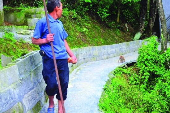 石志安下山后,小猕猴也跟来了,它舍不得石志安。