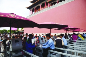 当日是中国第10个文化遗产日,北京故宫博物院正式试行每日限流8万人次。故宫博物院此次限流的目标是:实现单日接待观众不超过8万人次,全面推行实名制售票,旅行社团队全部实行网络预订门票,并提倡散客通过网络预订门票,逐步提高网络预售比例。 新华社记者 金良快 摄