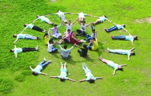6月12日,花垣县团结中学毕业生,摆出“爱心”、“花儿”、数字等各种造型拍摄毕业照,展示个性青春。 龙恩泽 摄