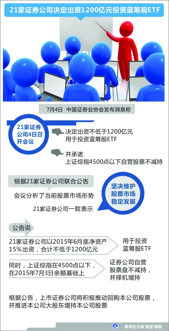 21家证券公司决定出资1200亿元投资蓝筹股ETF 。 新华社记者 崔 莹 编制