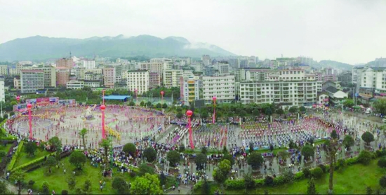 申遗成功消息传到永顺县城,文化广场成了欢乐的海洋。 本报记者 张 谨 摄