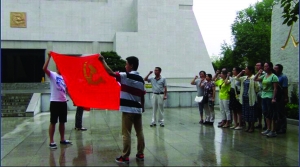 为庆祝中国全面抗战胜利70周年、建党94周年,7月2日,吉首市审计局干部职工赴怀化芷江抗战胜利受降纪念馆开展了为期半天的爱国主义参观学习。在纪念抗战胜利展览馆前,全体党员面对鲜红党旗,高举右手,重温入党誓词。