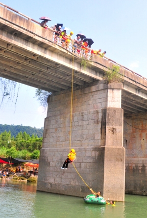 本报讯(通讯员 周改玲)7月7日,保靖10余名速降爱好者自发组织,在泗溪河桥上,玩起了10米桥梁速降。 在现场,速降爱好者身着救生衣,头戴安全帽,身系安全绳,争前恐后地从桥上实施速降。其中,6位保靖籍美女驴友巾帼不让须眉,体验“空中飞人”的感觉,完成了桥梁速降。 此次桥梁速降由保靖酉水部落户外协会组织,该协会有专业的速降人士。活动组织者介绍,此次“桥降”的会员,平常都接受过训练,为防不测,桥下安排了救生艇及救生员。 美女会员土匪窝(网名)也参加了这次“桥降”,她激动地告诉笔者:“飘逸!刺激!在速降的过程中,我感觉自己像一个战士一样勇敢,有种超越尘世的洒脱!” 2011年,保靖户外运动QQ群建立,2012年成立保靖酉水部落户外协会。2014年,该协会经保靖县体育局、民政局批准注册,QQ群也完成了由业余爱好群转型成为专业的户外群。 |