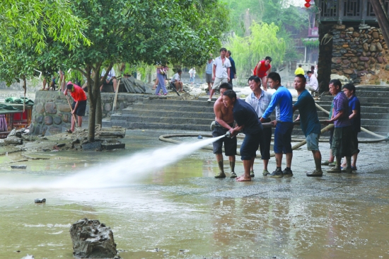 洪水袭击边城 干群灾后自救
