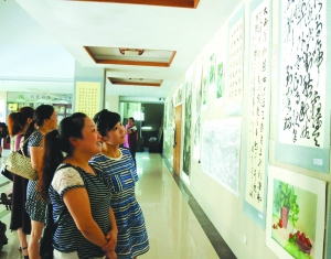 7月24日,古丈县会展中心,“欢乐潇湘 乐在湘西 文艺古丈”书画美术摄影作品展在这里展出。经过三个月的筹备,100多幅作品展现在观众面前。或浓墨重彩,或光影斑斓,百幅作品从不同角度、以不同形式展现了茶乡古丈丰富的自然、人文、历史面貌以及近年来的社会经济发展成就。图为观众在参观此次展出的作品。