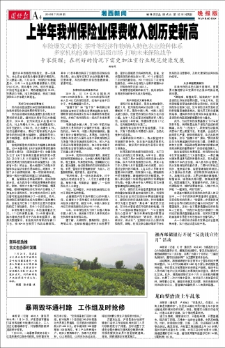 上半年我州保险业保费收入创历史新高