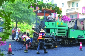 8月14日,保靖县城魏竹路在铺撒沥青路面。该县积极建设宜居环境,在完成魏竹路绿化、亮化后,对干线公路进行了改造,目前已经完成了工程量的40%。