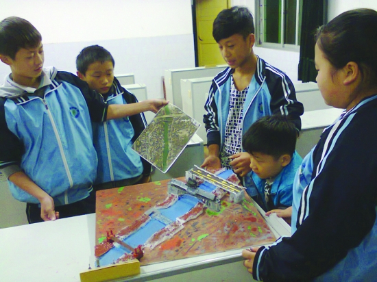 吉首二中学生在集体研讨科技活动项目《形形色色苗乡桥》。 张绍江 龙 桦 摄
