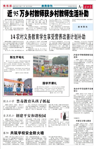新华社北京电 教育部网站近日发布的《农村义务教育学生营养改善计划专项督导报告》指出,营养改善计划实施3年多来,全国超过1/3的县实施营养改善计划,超过1/4的农村义务教育学生享受营养改善计划补助政策。 至2015年4月底,连片特困地区699个县(包括兵团19个团场)全部开展营养改善计划国家试点工作,9.14万所农村义务教育学校全部纳入实施范围,2132.12万名农村义务教育学生全部享受营养膳食补助。 全国共有23个省(区、市)的656个县开展营养改善计划地方试点工作,惠及4.24万所农村义务教育学校、1074.34万名学生。营养改善计划国家试点和地方试点覆盖学校总数达到13.38万所,覆盖学生总数达到3206.46万人,贵州、云南、西藏、陕西、甘肃等地实现农村义务教育学生全覆盖,四川67个民族待遇县实现义务教育学生全覆盖。 报告还指出,2012年以来,试点地区完成64828所学校的食堂建设项目,新建、改造面积达2378.21万平方米,实行食堂供餐的学校比例提高到65.98%。其中,国家试点县食堂供餐学校比例达67.04%,比2012年初提高13.54个百分点,农村学校就餐条件明显改善。 |