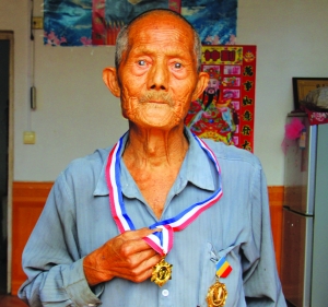 文/图 本报通讯员 张耀成 麻胜明 抗战精神,全民当歌。近日,惊悉花垣县符开疆、麻老虎、彭本义等抗战老兵相继去世,顿感凝聚在他们身上的抗战精神应尽快弘扬。于是,9月16日,我们驱车20公里,采访了抗战老兵陶岩林,聆听了难以忘怀的抗战故事。 为打日寇,小小少年替兄从军 “一身铁骨喜迎五岳长寿松,万代河山感恩八年忠义胆。”走近陶岩林家的院子,不见他在家,但大门两边贴着的一副对联却写照了这位91岁老兵的抗战精神。正在体味对联意境的时候,他手拿几颗红辣椒,从房屋侧后走出,热情地进屋取凳子,叫大家在院子里坐了下来。 陶岩林是花垣县边城镇板栗村人,1939年入伍。他说参军时只有14岁,当时,征兵的人看上了他的兄长,要他兄长入伍当兵。可兄长是家里的主要劳动力,而且很快就要与嫂子完婚。加上他听说“现在去当兵,主要是抵抗日本人的侵略,与日本鬼子作战”,于是,他怀着保家卫国的决心,毅然决定替兄从军。他说服了到村里的征兵人员,前往花垣县城报名。可接兵的连长一再说他“年龄太小”。他反复向连长表白他的决心,都未得到同意。 最后一次他急了,流着眼泪,十分生气地对连长说:“你们不是慢慢长大的吗?我14岁了,一年小,两年大,吃苦打仗我都不怕!”最后他冒出一句“打鬼子,是中国人都应该去,还分年龄大小吗?”连长看着他远去的背影,感动得叫勤务兵把他叫了回来,让他穿上了军装。 奋勇杀敌,屡次受伤不下火线 “战场上,打红眼了,也不知道什么是怕了,心里只有一个想法,多杀敌人!”陶岩林老人听力不好,与他交流,要对着他的耳朵大声说话,可说起抗战的事情,他却慷慨激昂、声音洪亮,而且配合着举拳头、打机枪、挥马刀等多个战斗手势和身态。说到愤怒时,眼睛炯炯有神,好似要喷出一团火焰。说到战士牺牲时,他却好几次泣不成声。 陶岩林老人曾转战多个战场,受过多次伤。但最让他难以忘怀的是1944年的一次对日作战。他清楚地记得,这次作战是在湖北与日军争夺一个叫平山坝的地方,许多战士英勇牺牲,他自己由于断后,脚踝处被鬼子的一颗子弹射中,伤断了脚筋,鲜血淋淋,不能行走。被战友送往南宁溪的一家战地医院治疗,可伤未痊愈,他便出了院。他说:“姓陈的医官劝了我好几次,但我想跟上部队继续打鬼子。”他还说,就在负伤出院的那段时间,他们的部队在广西的一个山区投奔了共产党的部队,在部队里修养了两周,但伤仍未痊愈,团长给他发了一个证件,叫他回家,并同时呼喊着“血可流、头可断,抗日剿匪处处可干”口号,相互道别。 几经转折,1950年,他回到了家乡板栗村。 不忘历史,年年高唱抗战歌曲 “日本来欺压,当兵离了家,遵守军规矩,好好学造化。挎上武装带,就把尖刀插,打败日寇再回家……”说到激动处,陶岩林老人不禁唱起了一首《不开小差》的战歌。他告诉我们,这首歌是二四拍子的歌曲,他年年都唱,特别是在抗战胜利日,必唱不可,并且他还把歌谱唱了一遍。他拖着沙哑的声音,从头至尾地唱着,一句也没有忘记。看着老人吃力的劲儿和有神的眼睛,听着充满抗战报国精神的歌曲,战场上那冲锋陷阵、英勇杀敌、浴血奋战的场景不时浮现在我们眼前,对老人崇敬的心情也越来越浓。 离开时,我们要求老人把他抗战的纪念章拿出来,让我们看一看,他有两个纪念章,一个是纪念抗日战争和世界反法西斯战争胜利65周年的,一个是纪念抗日战争和世界反法西斯战争胜利70周年的。我们请他戴上纪念章,紧紧靠在他的身边要与他合影。他却含泪说:“我在世的时日不多了,与我留影我很高兴,但更希望你们永远留住我们这代人的抗战精神。”随着,老人再次唱起“挎上武装带,就把尖刀插,打败日寇再回家”的歌曲。 |