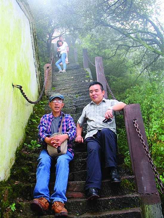 王跃文在天硚山好汉坡休息。 张礼富 摄