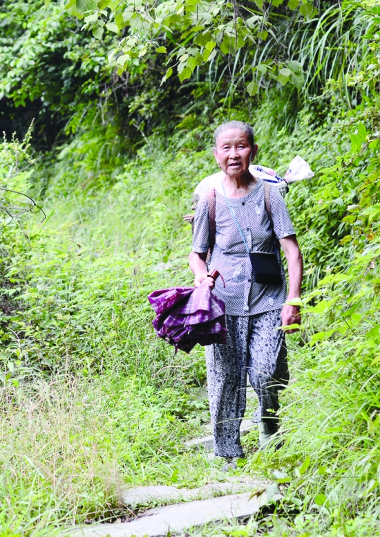 老人从浦市来,往高山坪村去,她说她走这条路好多年了。