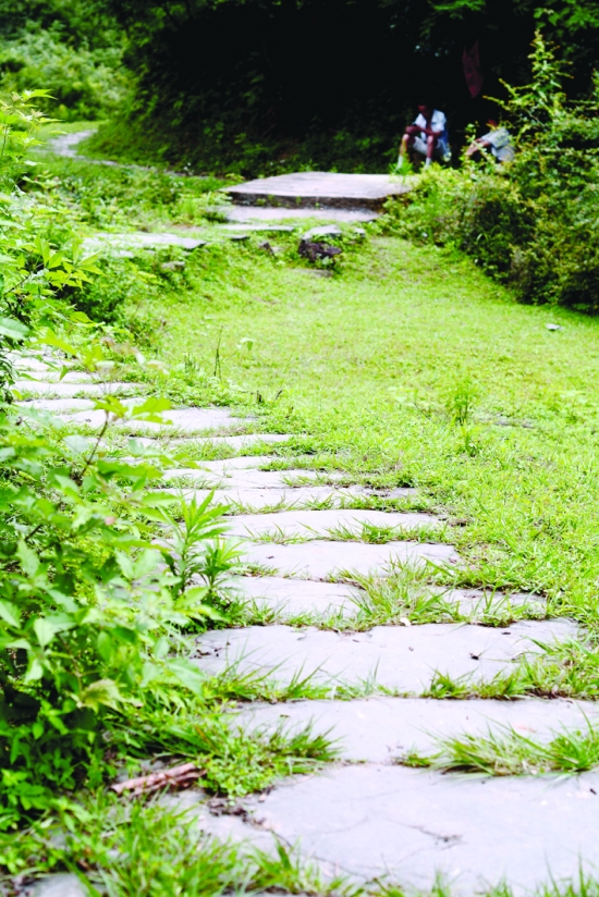 古驿道铺得十分平整,青石块已被磨得溜光。