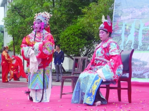 本报讯(通讯员 李焱华 覃书寅)金秋时节,在泸溪县石榴坪乡兰村一坪场上,唱腔动人,唢呐声声……这是该村辰河高腔剧团正在排练辰河高腔经典剧目《狄青观花》。 兰村辰河高腔剧团,历史较为久远,成立于新中国成立前,开山师傅刘恒良,其关门弟子80余人。剧团发展至今已历经好几代人,现有演员14人。兰村辰河高腔的“调子”保存得最完整、拿手戏最多、演员角色最齐全,目前仍保留着“香罗带、汉腔、新水冷、风云松”等调子10多个,“小生、旦角、花脸、老生、小丑”五个角色样样俱全,《大审白玉霜》、《风火关》、《六郎斩子》等经典曲目,十分出名,曾多次赴周边县市演出,深受群众喜爱。1995年,兰村发洪灾,该剧团演出服装、设施设备损毁严重,难以演出。近年来,在上级部门支持和指导下,逐步恢复了演出。 兰村,是泸溪乃至湘西一个非常大的村,有9个村民小组,4100多人。村支书刘克寿介绍,这里传统文化底蕴深厚,宗祠、高腔、花灯、龙舟远近闻名。近年来,兰村以创建社会主义新农村为目标,全力打造“文化美、村容美、民风美、创业美”的“四美兰村”,建设农家书屋,修建农民文化广场,配备音响,推广文体活动,现在是“组组有队,家家参与”。 如今,村里除了辰河高腔剧团处,还有15支文体队伍,春耕生产时,他们拿起锄头种田。秋播秋种之后,他们放下锄头演戏,使得农村文化活动风生水起,深受群众青睐。 现年63岁的刘本乾是兰村辰河高腔剧团的负责人,他说:“我14岁就入了剧团,我这辈子就爱辰河高腔,唱了近40年。这几年,经过大家努力,剧团逐步恢复了起来,老戏迷又可以过把高腔瘾啦!” |