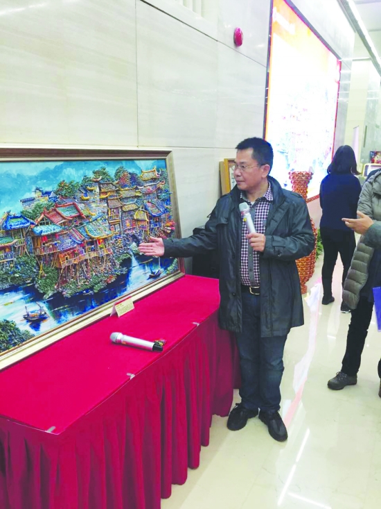 在北京评奖现场,省福彩中心相关负责人在推介我州参赛作品《天下凤凰》,该作品最终夺得一等奖。