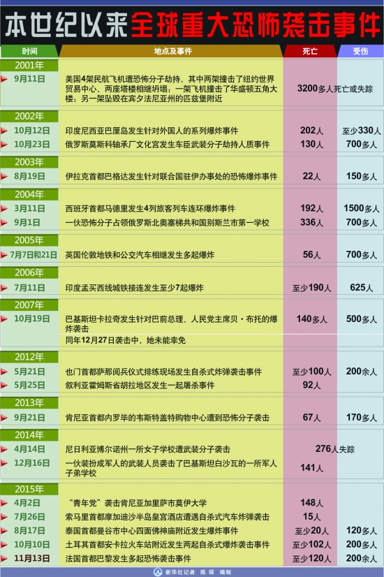 恐袭事件中伤亡