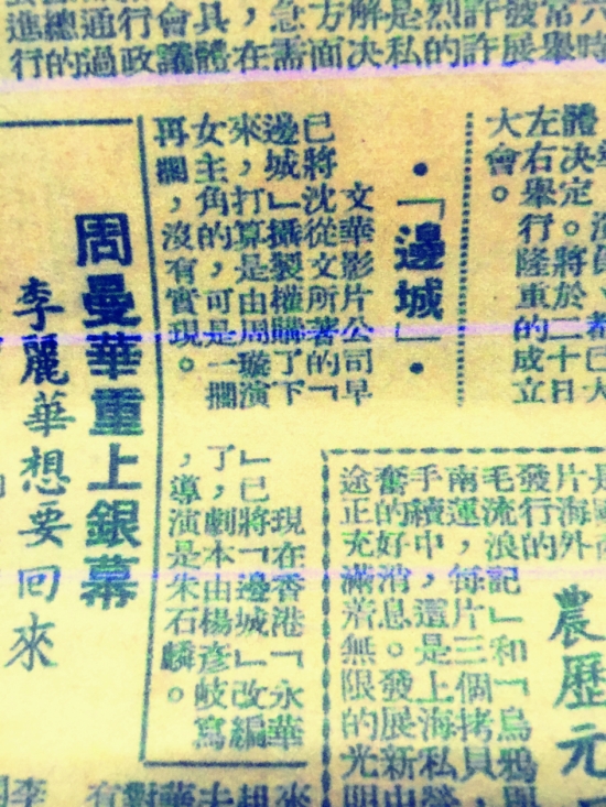 1949年,上海报纸《影艺》刊登的关于《边城》摄制权的消息。 石健 摄