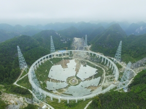 11月21日,6根钢索拖动球面射电望远镜(FAST)馈源舱进行功能性测试。 当日,正在贵州黔南安装建设的500米口径球面射电望远镜(FAST)馈源支撑系统进行首次升舱试验,6根钢索拖动馈源舱提升108米,并进行相应的功能性测试。 馈源是指望远镜用来接收宇宙外来信号的装置系统,馈源舱就是安放这个系统的舱体,可以称之为智眼的“眼珠”。FAST望远镜口径达到500米,从顶到底的垂直距离接近138米,是目前世界上在建的口径最大、最具威力的单天线射电望远镜,被称为观天智眼。FAST有望在2016年9月建成,建成后将成为世界级射电天文研究中心。 新华社记者 金立旺 摄 |