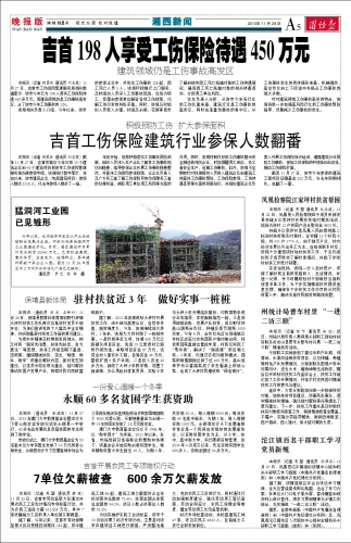 吉首198人享受工伤保险待遇450万元