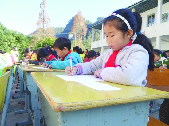 ▲ 学生用心书写汉字。
