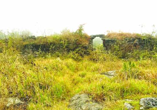 王坡屯城堡静卧山巅,城堡内黄草连天。