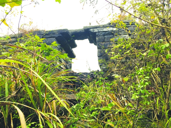 湮没于荒草中的城堡石门,经多年风雪侵蚀依然完整,不减当年威势。