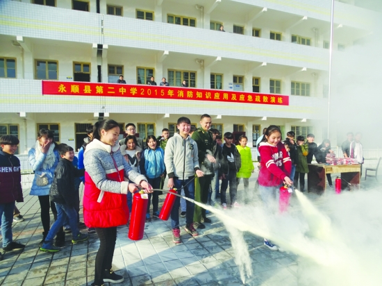 在消防官兵的指导下,不少学生学会了如何正确使用灭火器灭火。