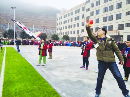 吉首谷韵民小学生进行航模展演。