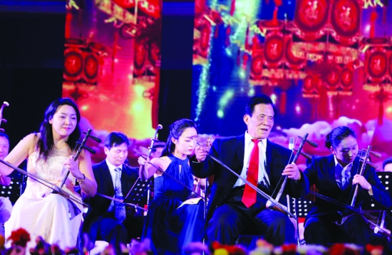 二胡演奏家、吉大教授黄传舜与州内艺术家合奏一曲《喜迎春》,拉开晚会的序幕