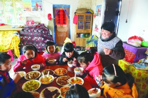 1月8日,陈翠华老人在照顾孩子们吃午饭。 今年75岁的陈翠华老人家住安徽省全椒县武岗镇武岗村。9年前,陈翠华在村委会的鼓励和支持下,在自家建起留守儿童之家,义务为村里的留守儿童做饭,陪伴孩子们学习、玩耍,让留守儿童有了快乐的“家”。 多年来,先后有20多名留守儿童在陈翠华老人的关怀下成长,陈翠华被称为“爱心奶奶”。在陈翠华老人的影响下,武岗村将这样的“留守儿童之家”在全村进行了推广,越来越多的留守儿童得到了关爱。陈翠华老人说:“我照顾好这些孩子,他们的父母才能安心地在外打工。只要身体条件允许,我就会将留守儿童之家办下去。” 新华社记者 刘军喜 摄 |