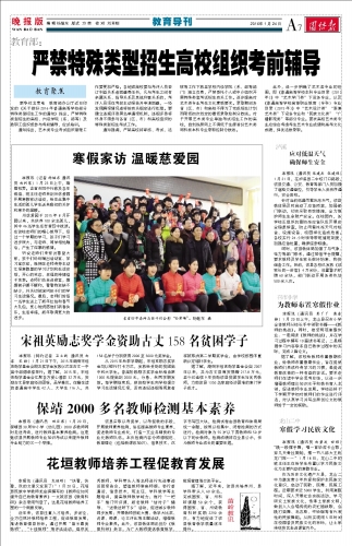 召市小学 为教师布置寒假作业 本报讯(通讯员 彭丫丫 戴春静)1月20日上午,龙山县召市小学全体教师从校长手中领取书籍———《教师的挑战》。同时,接受两项寒假作业:一是阅读《教师的挑战》,并在学习过程中撰写10篇读书笔记;二是根据学习内容联系自己教学过程中的实际,完成2篇论文。 据了解,该校给教师布置假期作业,给教师布置假期作业,旨在促使教师们养成终身学习的习惯,是促进教育改革的一种有益的尝试。要求老师们在读中学会思考总结,以进一步增强教师理论知识水平和教书育人本领,促进教师专业发展。学校还将于下学期开学初对教师们的作业进行评选,对认真学习并写出原创论文的教师给予一定的奖励。 |