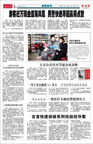 游客近万现金遗落凤凰 民警快速寻回赢得点赞
