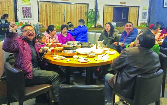 2月4日,在长沙工作的向昌浩起了个大早,带着一家人急切地赶回家。亲朋好友,围坐一席,谈笑风生,这是最舒心惬意的时刻。 向汉品 摄