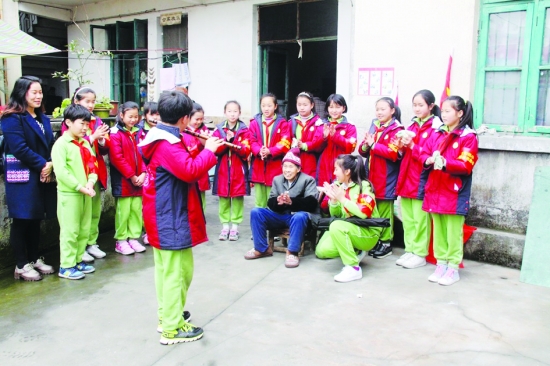 3月4日,吉首市谷韵民族小学“学雷锋娃娃服务队”及镇溪街道团工委志愿者,来到街道所属胡麻井社区“五保户”杨荣芝老人家中,陪老人聊天,为老人表演节目,帮老人打扫卫生,让老人感受来自社会的温暖。 据了解,老人今年76岁,无子女、无工作单位,老伴去年因病去世,独自在家无人照顾。该校将长期开展“学雷锋”等主题教育活动,践行社会主义核心价值观。