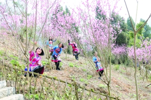 3月11日,一群土家少女在永顺老司城遗址绿化观光带漫步赏花,与盛开的桃花争艳媲美。近年来,该县在老司城景区配置春、夏、秋、冬四季观景植物,先后栽植香樟、桂花、玉兰、腊梅、山茶、樱花、桃、李等绿化苗木20余万株,营造出常年花开、四季芬芳的丽人景观。 罗寿冈 摄