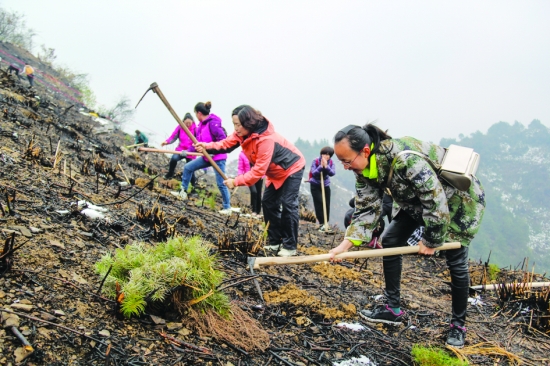 古丈县干部职工在开展植树造林活动。该县今年将完成人工造林15234.3亩,封山育林16438.5亩。 张术杰 彭 娇 摄