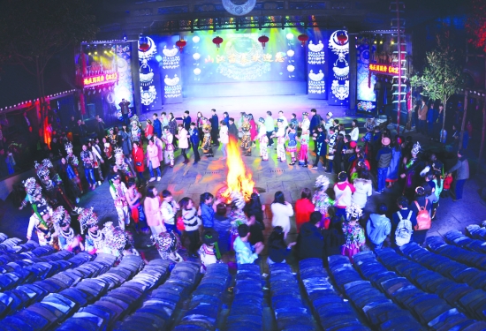 演出结束后,篝火烧起来,演员与游客一起狂欢。