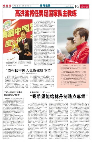 高洪波将任男足国家队主教练