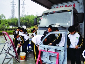 4月7日,花垣县职教中心汽修班的学生们正在进行发动机维修、汽车喷漆、美容等实训操作。据了解,近年来,该校对接市场需求,敞开校门办学,积极开展校企合作,同广东省东莞市凌凯汽车教学装备有限公司合作开办汽车维修专业,得到社会广泛认可。