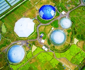 空中俯瞰“花漾星球太空农场”的生态大棚(4月9日摄)。 随着春季气温逐渐回升,浙江省天台县的“花漾星球太空农场”吸引各地游客前来感受浓浓春意。 “花漾星球太空农场”共有9个太空舱,以太阳和8大行星命名。9个太空舱都有不同的功能与作用,分为“植物育婴室”“气雾栽培馆”“立体基质栽培馆”“鱼菜共生馆”“外星人博物馆”“航空航天科普体验中心”“太空果蔬体验馆”等。“花漾星球太空农场”是浙江省省级农业园特色项目,也是国内首家以太空文化为主题的科普亲子农场,一期工程占地260亩,项目总投资约8000万元,集农业观光旅游、果蔬采摘、太空科普体验、新型益智类娱乐休闲、科研教学、示范推广等功能于一体。 新华社记者 徐 昱 摄 |