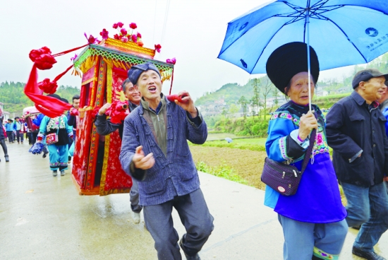 出发咯!苗族传统婚嫁习俗吸引了众人的目光。